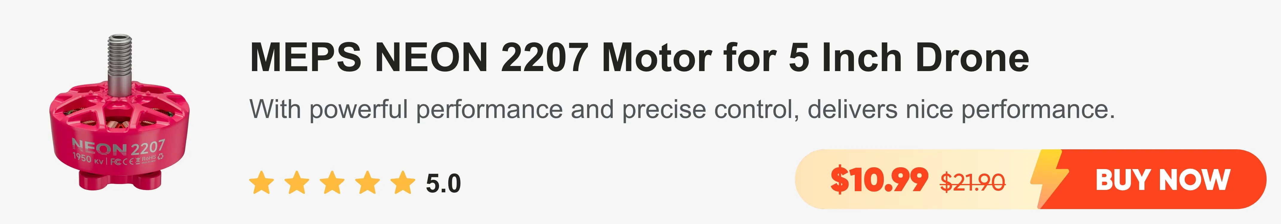 The MEPS NEON 2207 is a fun, colorful, and inexpensive motor that’s best suited for beginners on a tight budget or pilots who fly conservatively. It’s a decent starting point for learning FPV racing or freestyle maneuvers, though serious racers may want to upgrade to more durable and consistent motors once they progress.