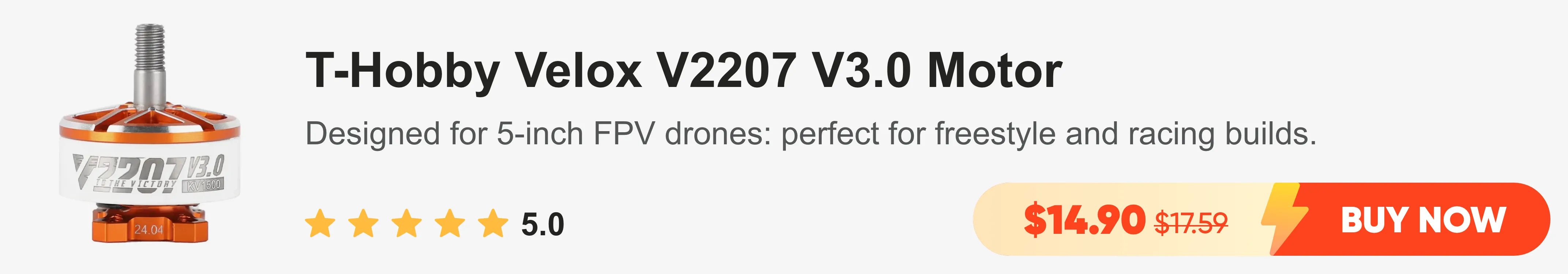 The THobby Velox V2207 V3 is one of the best-performing budget FPV motors in 2025, striking the perfect balance between power, smoothness, and affordability. Designed for 5-inch freestyle and racing drones, it delivers professional-grade performance at a fraction of the cost — making it a favorite among both seasoned pilots and newcomers looking to upgrade.
