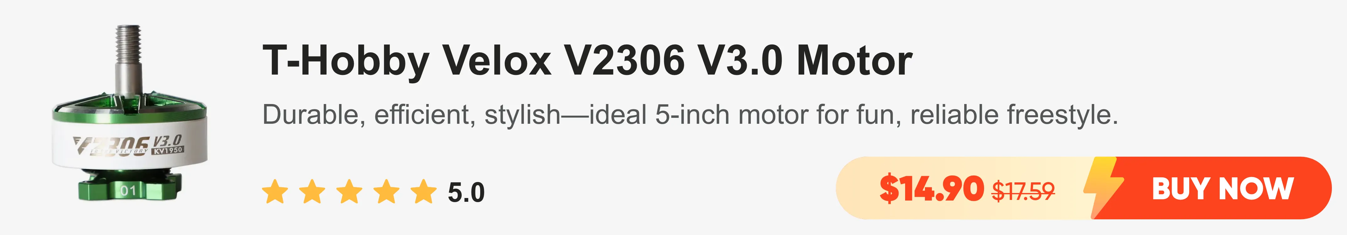 Freestyle pilots praise the Velox V2306 V3 for its smooth throttle response, linear power delivery, and impressive performance-to-price ratio. Many note that while it doesn’t completely match the brute force of THobby’s flagship F-series, it comes very close, making it an unbeatable value for its class.