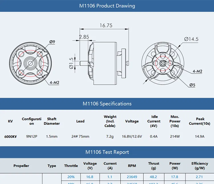 ● 3–4S optimized, high thrust for lightweight micro builds.
