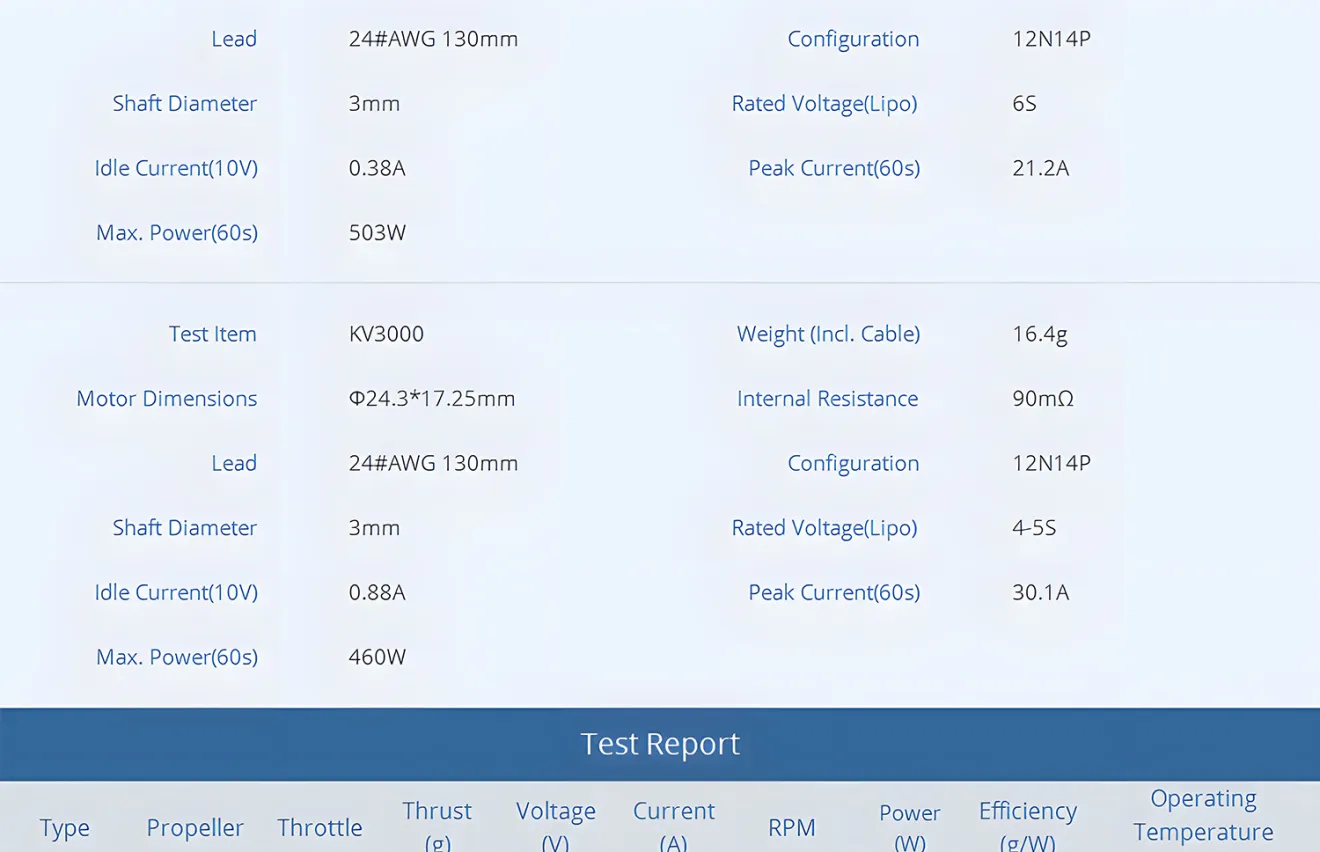 ● 3000KV for 3" cinewhoop, 4-5" toothpick/ultralight drone