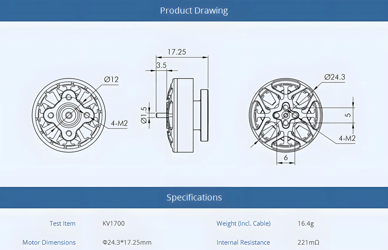• 3000KV for 3" cinewhoop, 4-5" toothpick/ultralight drone