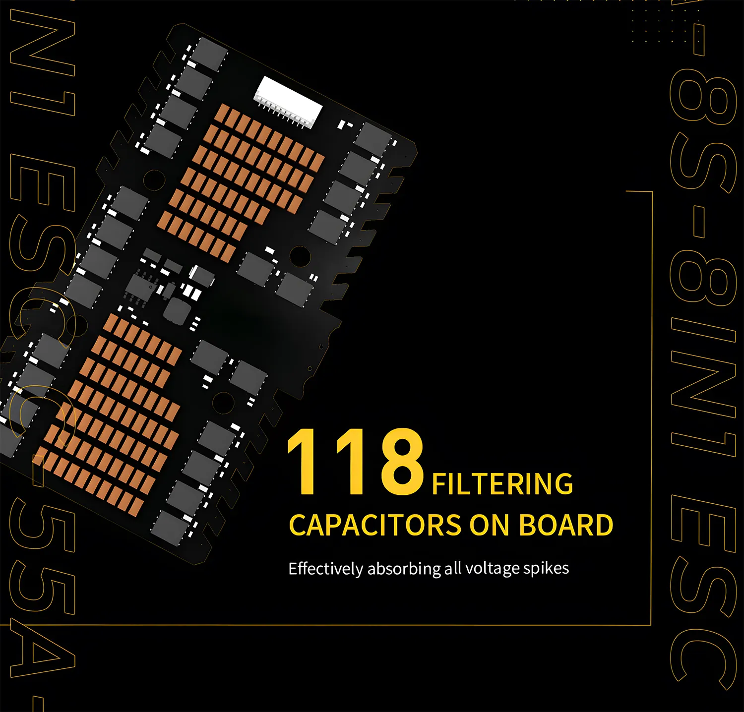 The T-HOBBY C55A ESC features an external dual capacitor pad, significantly enhancing ESC durability and service life.