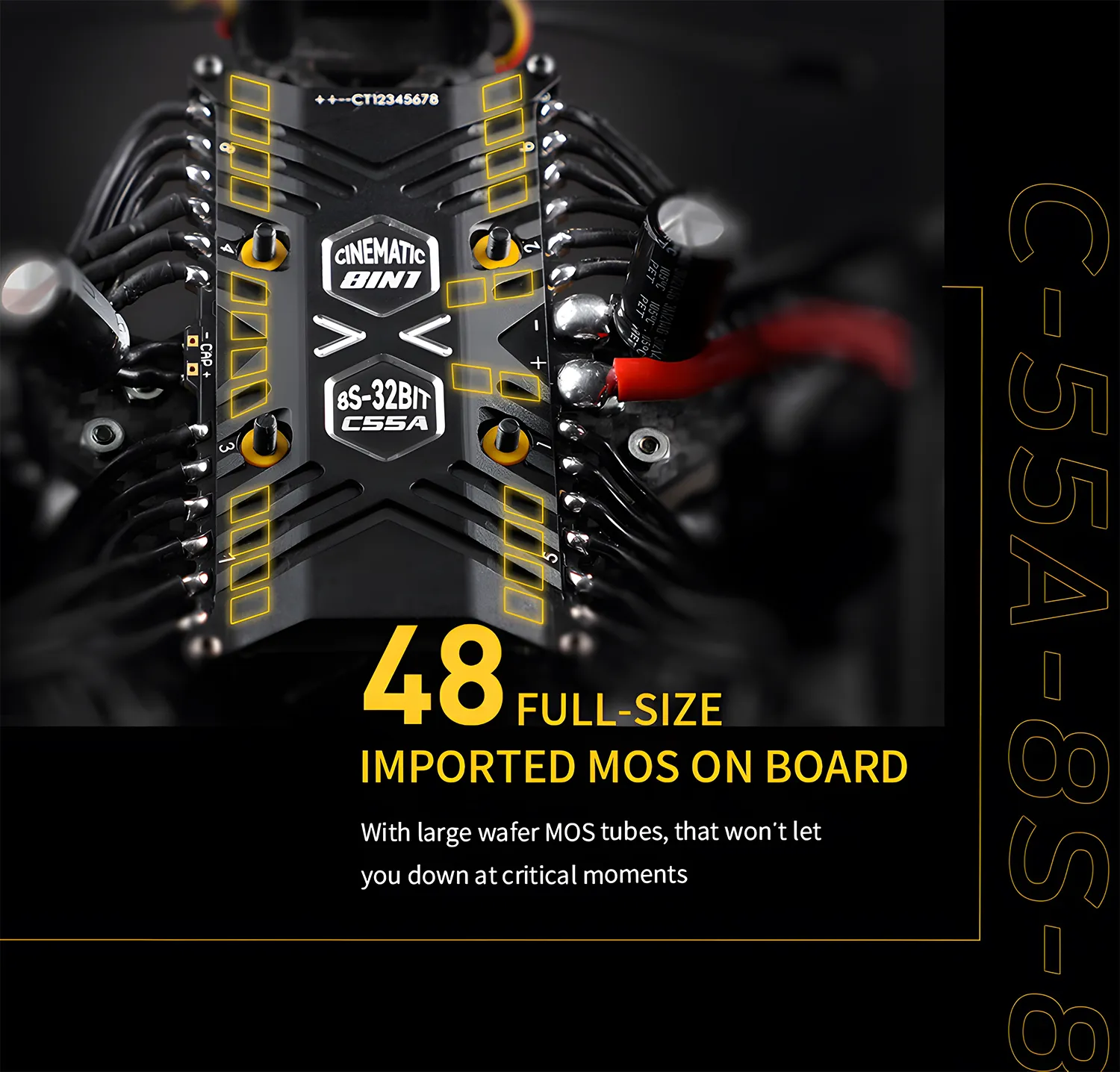 The T-HOBBY C55A features full-size imported MOSFETs with large wafers, delivering dependable performance even in critical flight moments.