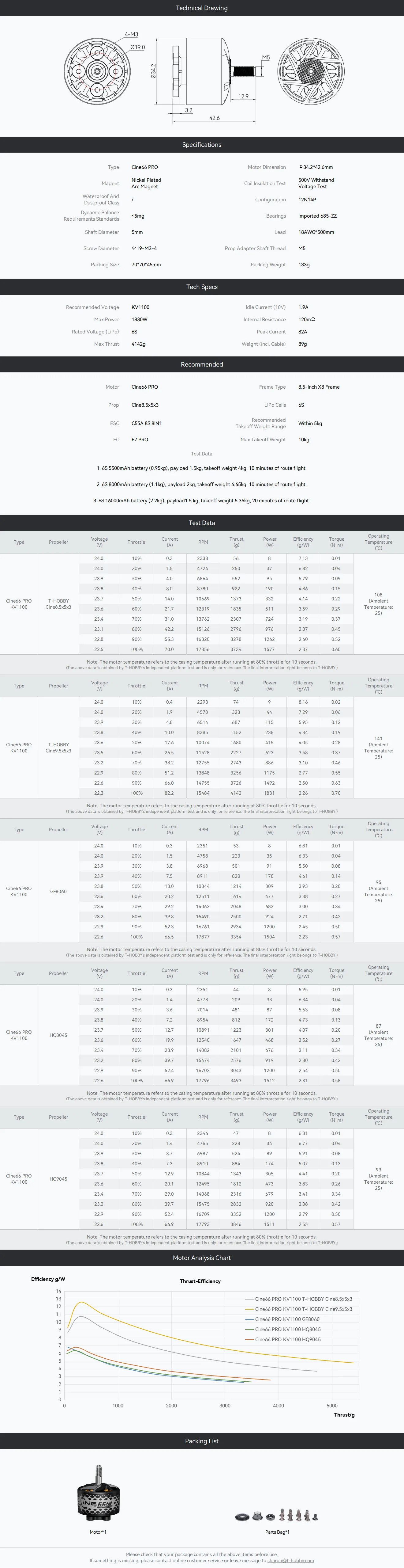 NEWT-Hobby CINE66 PRO 8-9.5 Inch FPV Cinematic Brushless Motor-3.7kg+Thrust