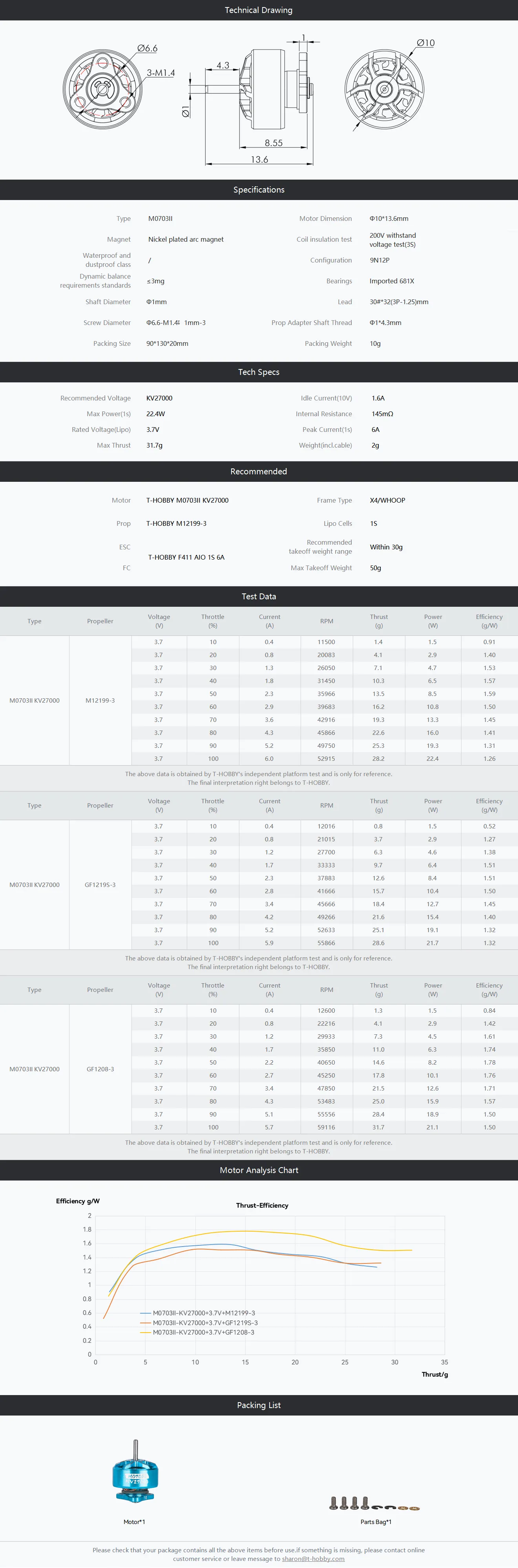 About T-HOBBY M0703 II 27000KV Micro Motor for 65mm Tinywhoop drone: