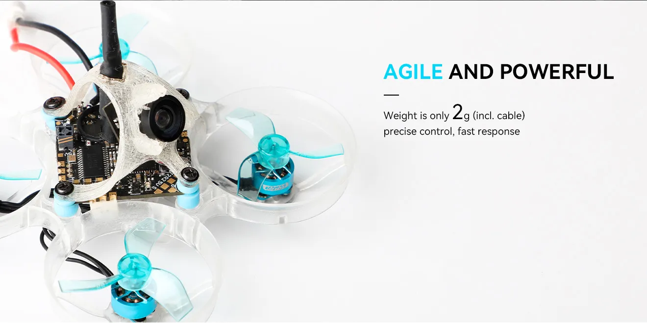 Weighing only 2g (including cable), it offers precise control and rapid response, delivering exceptional agility in every flight.