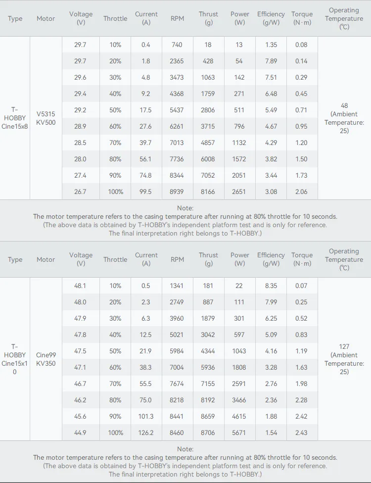 The T-HOBBY C15×8 is built for large, heavy-lift cinematic drones, delivering strong, stable thrust with low vibration. Its durable composite structure, optimized airfoil, and secure mounting make it ideal for long-range flights and professional aerial filming.