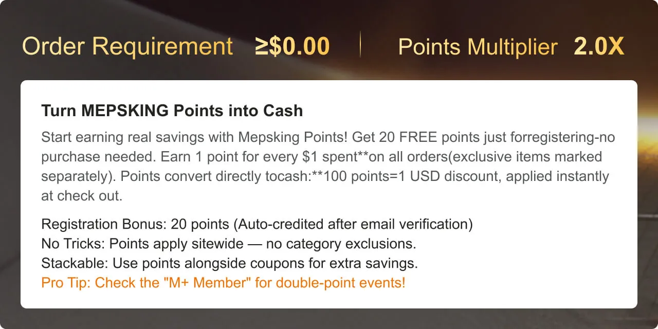 Spend $500 in Total and Redeem a Free MEPSKING Set.