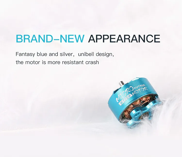 Featuring a fantasy blue and silver unibell design, this motor not only looks striking but is also more resistant to crashes, ensuring long-lasting performance for your micro drones.